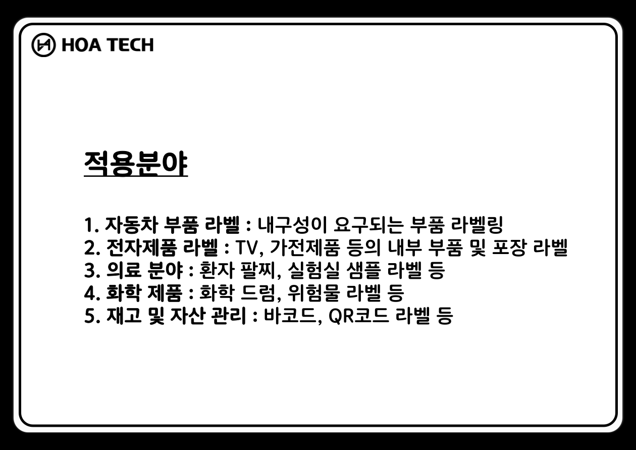 (주)호아텍은 다양한 산업현장에 맞춤형 왁스.리본 소모품을 공급하며,