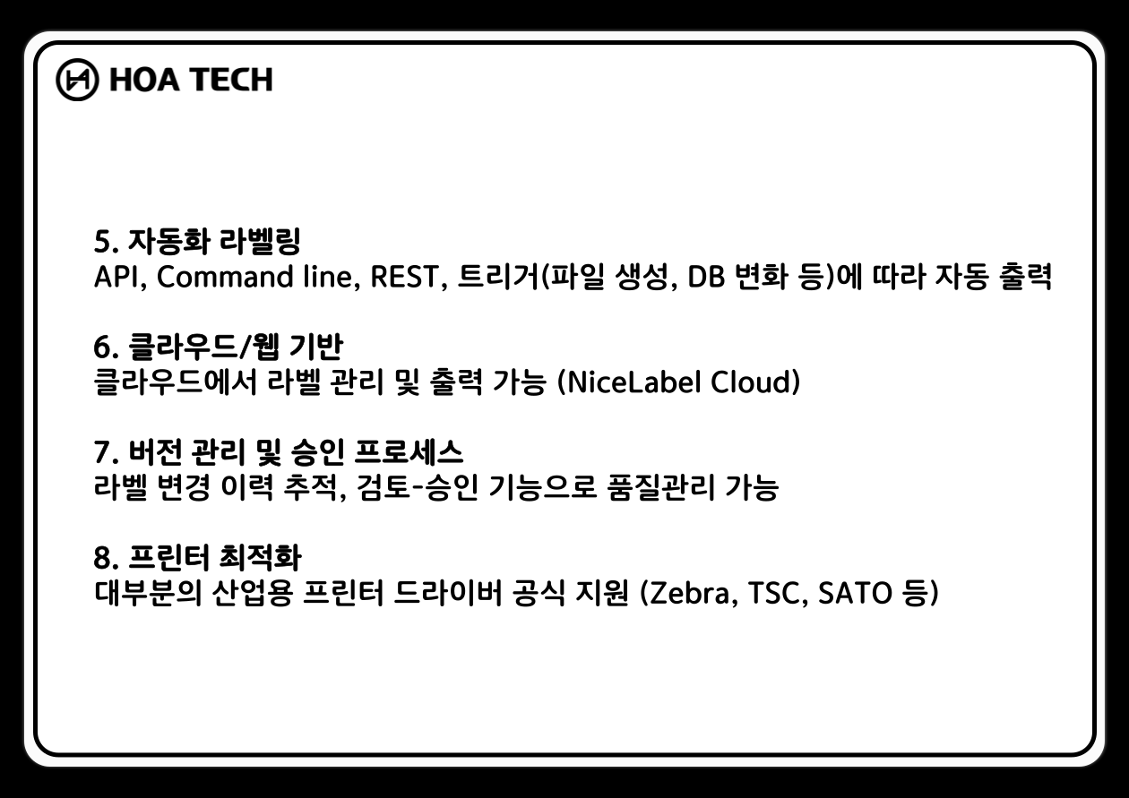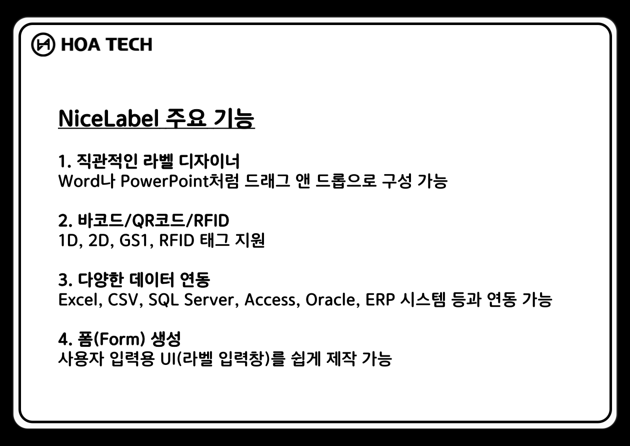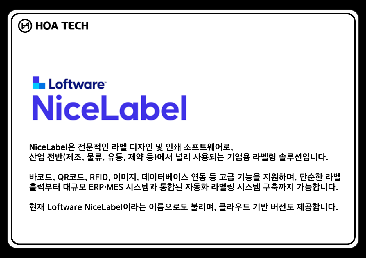 (주) 호아텍은 자체 맞춤형 라벨출력 솔루션 HOA TAG 및 정품 기성 프로그램을 공급합니다.